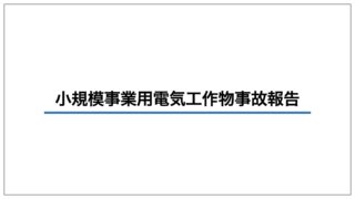 小規模事業用電気工作物に関する事故が発生した際は、管轄する産業保安監督部長や経済産業大臣に報告する必要があります。この小規模事業用電気工作物とは、低圧の事業用発電設備のうち、10kW以上50kW未満の太陽電池発電設備及び20kW未満の風力発...